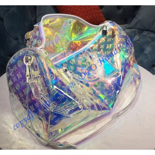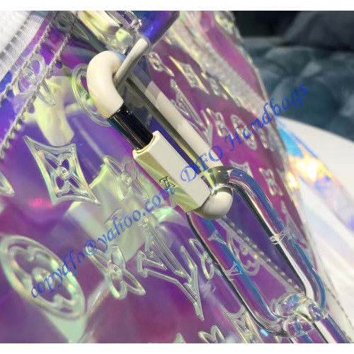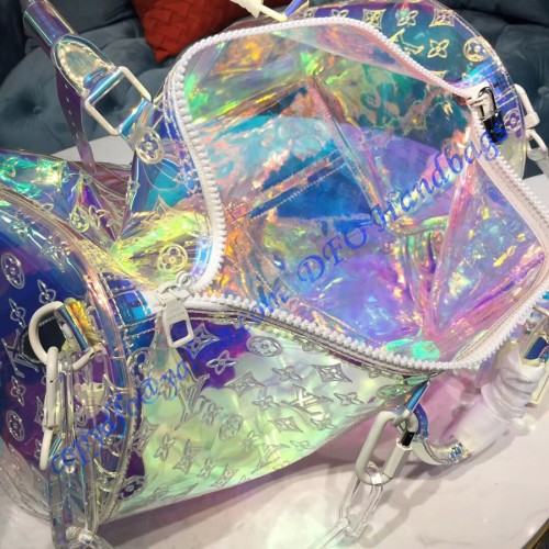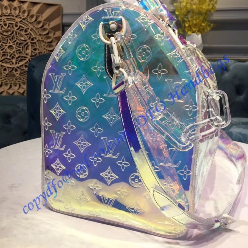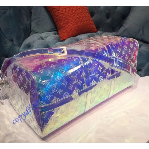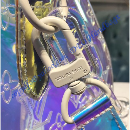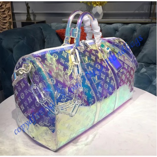This colorful take on the Keepall Bandouliere 50 represents the pioneering vision of menswear artistic director Virgil Abloh: the combination of his youthful vibrancy with the timeless elegance of Louis Vuitton. Made of Monogram-embossed PVC, this generously sized bag captures the eye with its bold, iridescent hues. A choice between the removable strap or top handles for carrying ensures versatility.