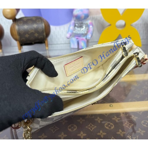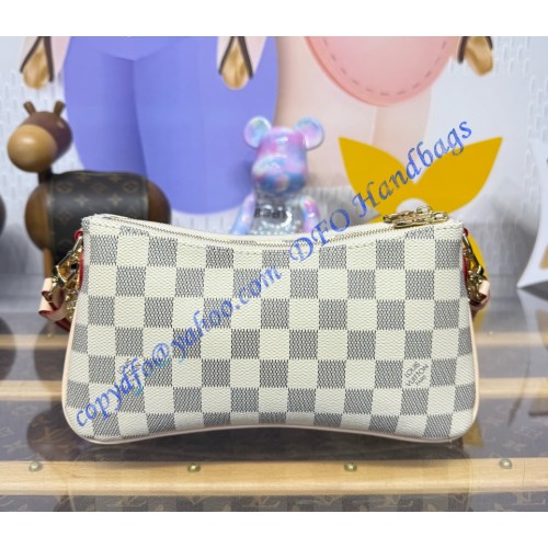 Showcasing the House’s iconic Damier Azur canvas, this edition of the Liv Pochette is a timeless choice for all seasons. Designed to fit snugly under the arm, it is fitted with a gold-tone chain and an adjustable strap – both of which can be removed if desired. The signature plaque pays tribute to the exquisite craftsmanship Louis Vuitton is known for.
