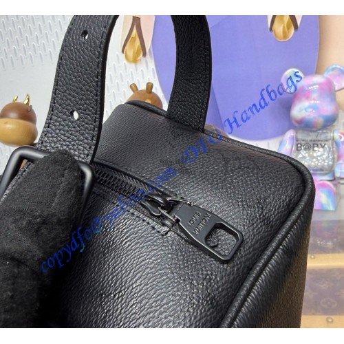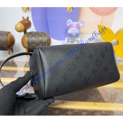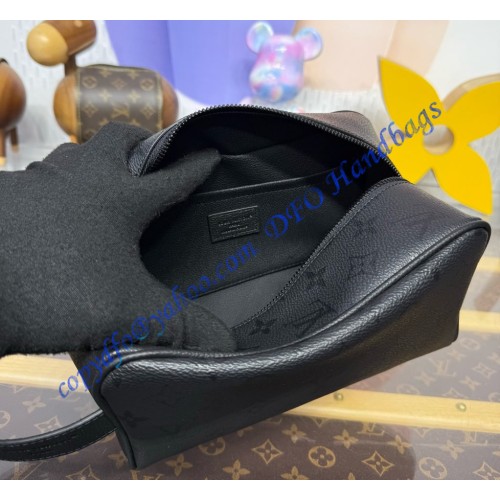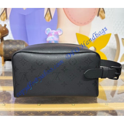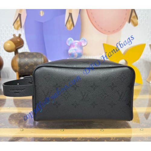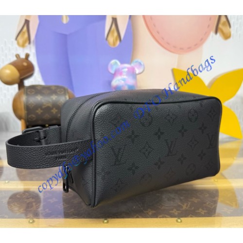 Monogram Midnight coated canvas, with its discreet black-on-black Monogram motif, brings a contemporary edge to the Locker Dopp Kit. Matte black hardware complements the lightly grained leather handle. Compact yet roomy enough for all the essentials, its practical design includes an inside zipped pocket.