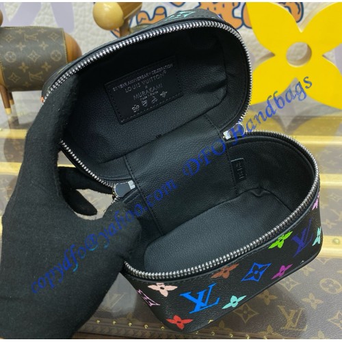 The Nice Nano vanity case is an elegant essential crafted in bijou proportions with a leather handle and double zipper fastening around the top. It is made from multicolored Monogram coated canvas from the re-edition of the Louis Vuitton x Murakami collection, which reimagines the House’s iconic signature with the Japanese artist’s joyful palette. A washable textile lining completes the design with a practical touch.