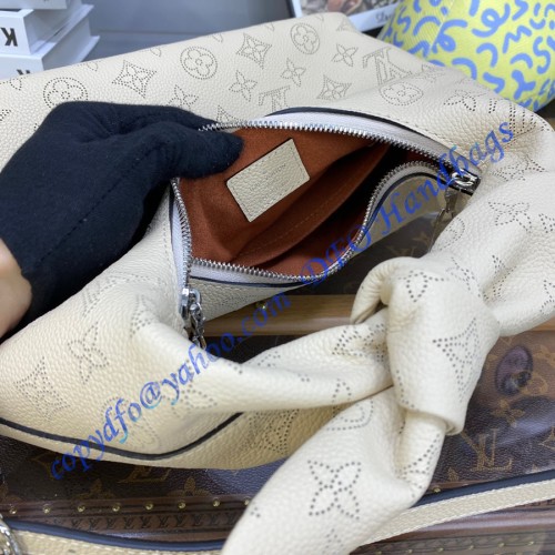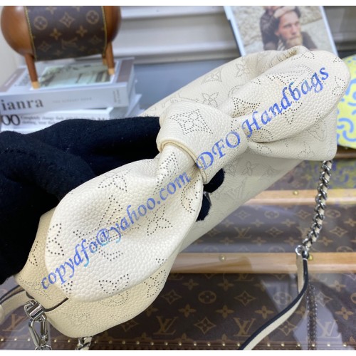 Feminine, modern, and very body-friendly, the Why Knot PM handbag is made from the House’s emblematic Mahina calf leather, with its perforated Monogram pattern. Immediately recognizable by its knot-shape handle, this functional bag is perfect for daily essentials like a phone, wallet, keys and sunglasses. The removable braided-leather chain enables shoulder and cross-body wear.