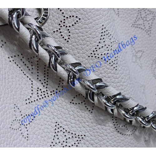 Louis Vuitton unveils the Bella bucket bag in Mahina calf leather with its perforated Monogram pattern. The bag’s small size and the attached round coin purse, featuring a miniature version of the perforated Monogram motif on one side, make it modern, desirable and trendy. The sophisticated leather and metal mixed handle associated with a removable leather strap bring versatility.