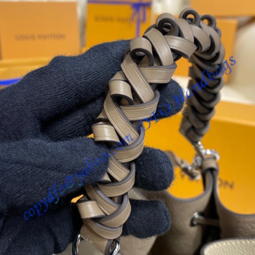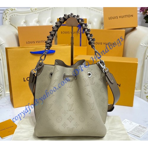 The Muria bucket bag is made from Mahina calf, a perforated leather with a discreet Monogram motif. Supple and sophisticated, it is a pleasure to carry, either by the braided top handle or the long leather strap, which adjusts for short- and long-shoulder or hands-free cross-body wear. Crafted signature details include a name tag and keybell in smooth calfskin.