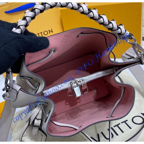 The Muria bucket bag is made from Mahina calf, a perforated leather with a discreet Monogram motif. Supple and sophisticated, it is a pleasure to carry, either by the braided top handle or the long leather strap, which adjusts for short- and long-shoulder or hands-free cross-body wear. Crafted signature details include a name tag and keybell in smooth calfskin.