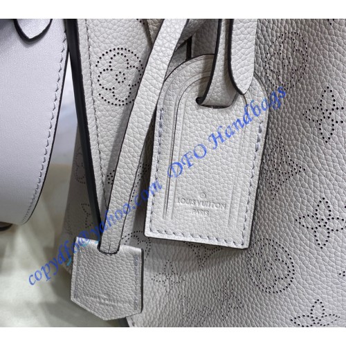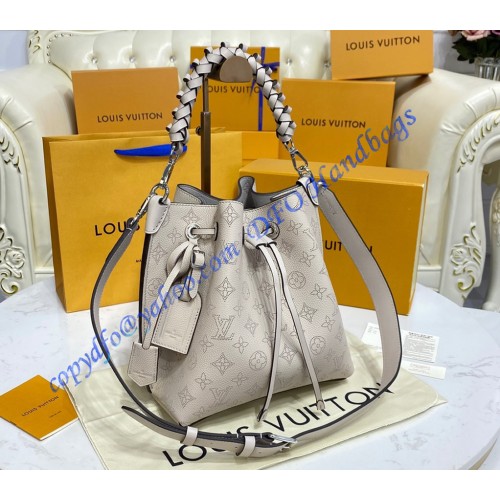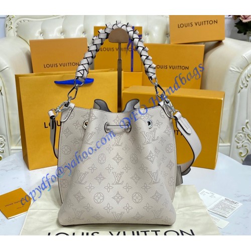 The Muria bucket bag is made from Mahina calf, a perforated leather with a discreet Monogram motif. Supple and sophisticated, it is a pleasure to carry, either by the braided top handle or the long leather strap, which adjusts for short- and long-shoulder or hands-free cross-body wear. Crafted signature details include a name tag and keybell in smooth calfskin.
