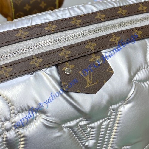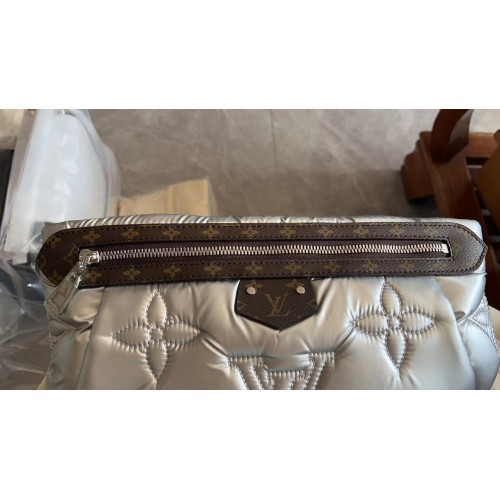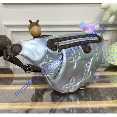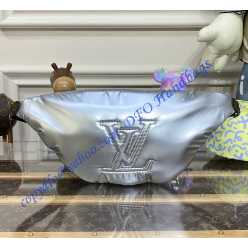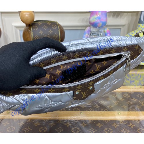 The LV Pillow Maxi Bumbag shines bright, on chilly city streets or snowy ski trails. Made from puffy, embroidered, recycled nylon with mini Monogram trim, this silvery signature accessory is as cool as it is functional: roomy and lightweight, it’s a hand-warmer too. Designed to be worn either cross-body or at the waist.