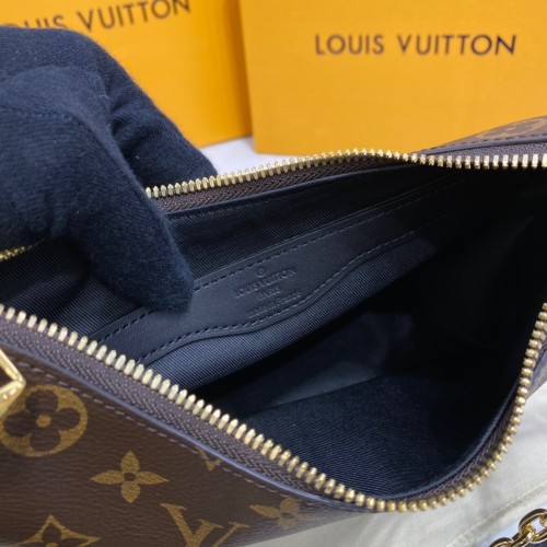 The versatile Boulogne handbag is made from classic Monogram canvas and features a removable strap, enabling cross-body, long-shoulder and short-shoulder carry. Without its strap, the Boulogne becomes a small chain bag or clutch for more formal occasions. It has a double-zip opening and an inside flat pocket large enough for an iPhone 12 Pro.