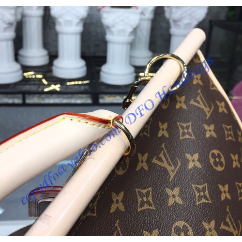 Designed using classic Louis Vuitton monogram canvas and natural cowhide trimmings, this is already an elegant-looking bag. The addition of golden brass buckles and hoops further enhances its style.