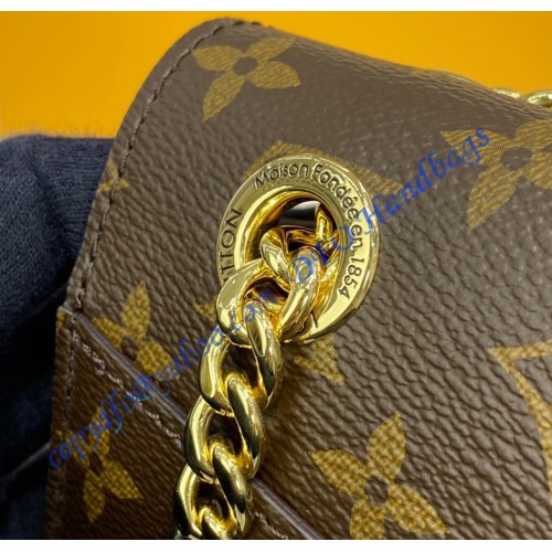The compact Chain Bag handbag in Monogram canvas with a sliding chain is the quintessence of casual chic. A functional day-to-evening bag, it has front and back outside pockets for quick access to essentials as well as two inside pockets. It closes with a magnetic LV lock in black resin with a gold-color outline.