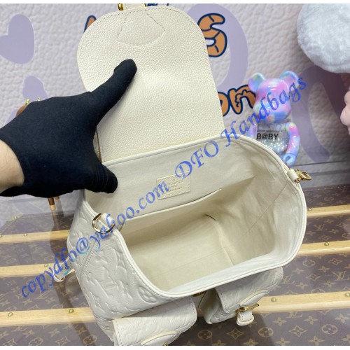 The playful Backup backpack is made from Monogram Empreinte leather, with the Monogram pattern subtly embossed into the cowhide. This versatile bag can be carried on the back or shoulder, thanks to its adjustable strap, by hand, with its sturdy top handle, or even cross-body using the braided chain.