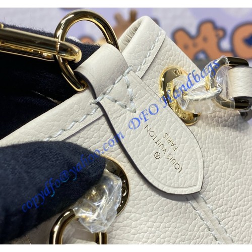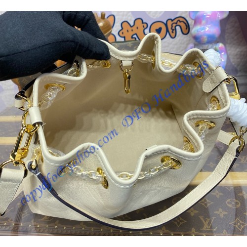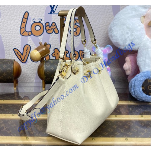 The LV Bundle bag is made from Monogram Empreinte leather with gold-color hardware, including on the chain drawstring. This “day to evening” bag’s sleek lines will match almost any summer outfit. It has two handles for fashionable hand carry as well as an adjustable and removable strap for comfortable cross-body and shoulder wear.