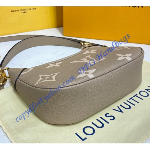 The Bagatelle mini hobo handbag is fashioned from supple, grained Monogram Empreinte leather. The embossed motif is oversized, the better to highlight the delicate color contrast of dove gray and cream. A graceful companion for any ensemble, it offers a host of stylish carry options thanks to the removable handle and detachable, adjustable strap.