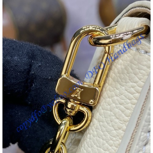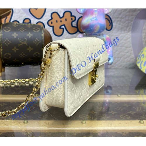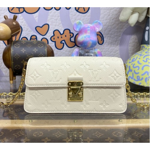 The Métis Wallet On Chain is crafted from grained Monogram Empreinte leather, which is embossed with Louis Vuitton's signature Monogram pattern. This stylish bag has a trapezoidal shape and a front flap which is secured with an S-lock clasp, referencing the House's historic trunks. It features a removable chain for cross-body wear.