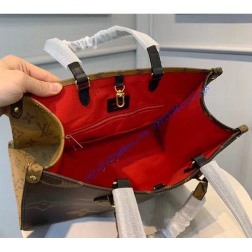 The name says it all: Onthego MM takes care of business or shopping, with plenty of room for a busy woman’s essentials. With classic Monogram canvas on one side and Monogram Reverse on the other, it is virtually two bags in one. Twin Toron top handles and two shoulder straps offer several different carry styles, for extra versatility.