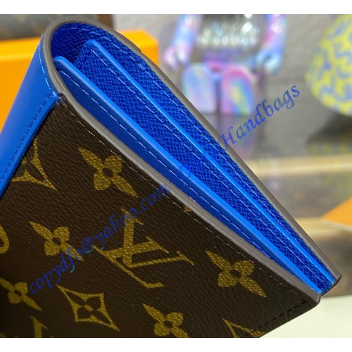 Combining Monogram Macassar canvas with bold-colored leather trim, this Passport Cover brings a touch of color to the world of travel. In addition to protecting passports, this functional accessory has four card slots and a flat pocket to keep things organized. The textile lining is in the same bold color as the exterior trim.