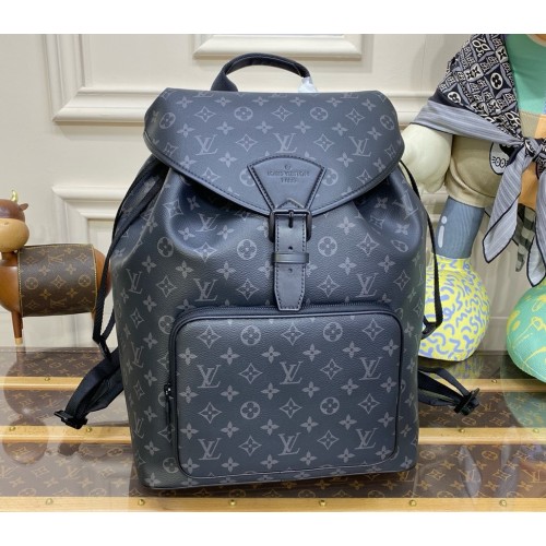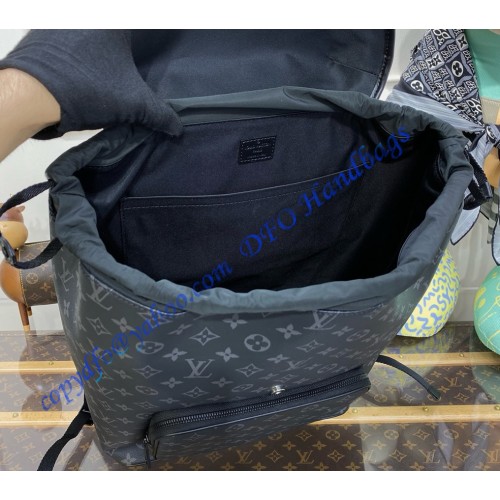 The Montsouris Backpack looks chic in Monogram Eclipse canvas and black cowhide-leather trim. A practical bag, the Montsouris has a large front zipped pocket for easy access to essentials. It closes with a drawstring and a magnetic buckle strap. The shoulder straps adjust for comfortable carry.