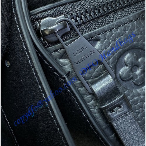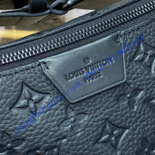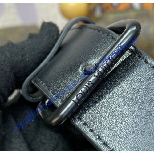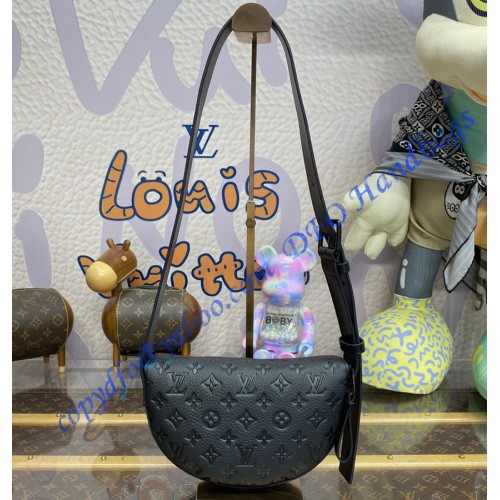The LV Moon Crossbody bag is made from Monogram Empreinte Leather with black-leather trim and strap, giving it a masculine sophistication. The bag’s half-moon shape makes it comfortable to wear, whether across the front of the back of the body. It can easily fit a phone, small wallet, and earphones.
