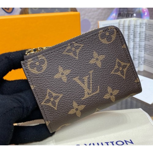 The Noa compact wallet comes in Louis Vuitton's iconic Monogram canvas. This small, square model is distinguished by its L-shaped zip, which opens to reveal a colorful leather lining. Inside, it contains six slots for cards, as well as a generously sized folded pocket.