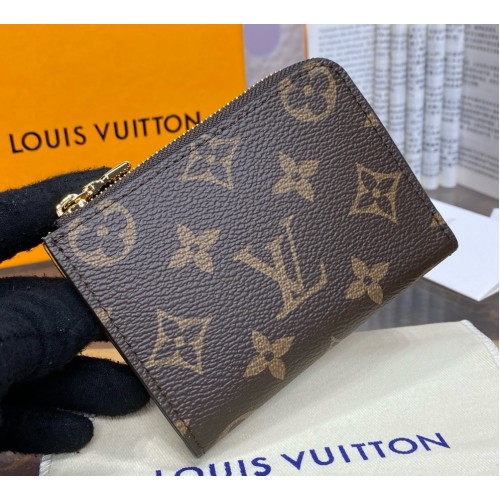 The Noa compact wallet comes in Louis Vuitton's iconic Monogram canvas. This small, square model is distinguished by its L-shaped zip, which opens to reveal a colorful leather lining. Inside, it contains six slots for cards, as well as a generously sized folded pocket.