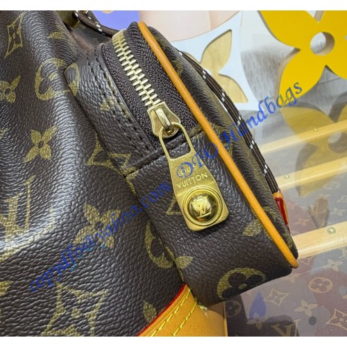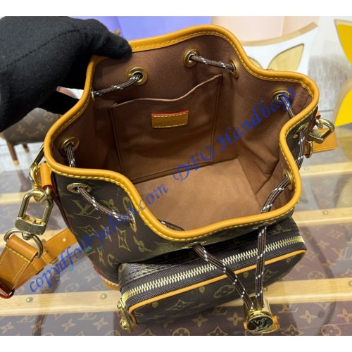 The Noé Cargo in Monogram canvas with aged-leather trim draws its essence from the original Louis Vuitton Noé bucket bag, created in 1932 to carry champagne bottles. With its spacious front pocket and meticulously crafted details, it pays homage to the House’s storied past while embracing contemporary needs. A top handle and shoulder strap – both removable – give carry options.