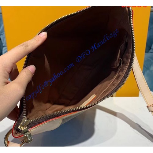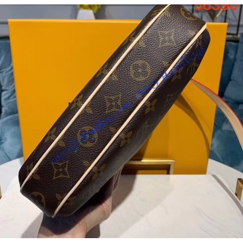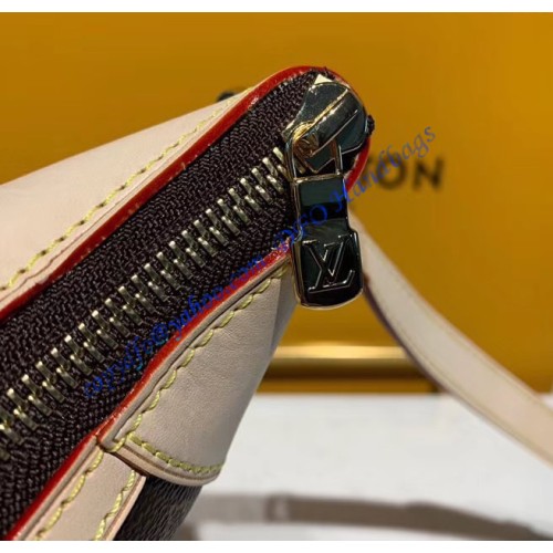 It is made of monogram canvas with natural oxidizing cowhide trim which turns to honey color over time. It has golden hardware, an adjustable shoulder strap, and a top zip closure. Inside the bag, there is textile lining and a patch pocket. It comes with serial and model numbers, a dust bag, a care booklet, and cards.