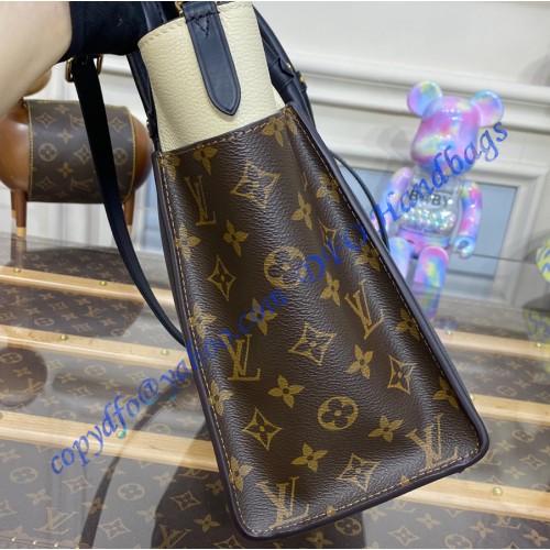 The On My Side tote bag is fashioned from an elegant combination of small-grained calf leather and emblematic Monogram canvas. The large outside pockets in contrasting canvas create a bag-in-a-bag look. The roomy interior can easily hold everything needed for a day at the office while the adjustable strap makes for practical cross-body carry.