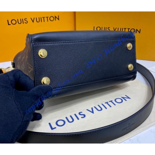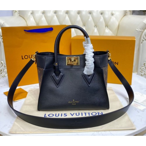 The On My Side PM is a compact tote bag made from soft calf leather with side panels in classic Monogram canvas. This adorable everyday bag boasts a wide removable strap for on-trend shoulder and cross-body wear as well as two top handles for hand and elbow carry. Two large outside pockets give easy access to essentials.