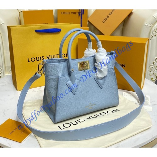 Fashioned from smooth calf leather with side panels in Mahina calf leather, this On My Side PM tote bag is a smaller version of the original On My Side tote. Versatile, it has numerous pockets, including two large outside pockets. The side panels are delicately perforated with the Monogram pattern for a subtle Louis Vuitton signature.