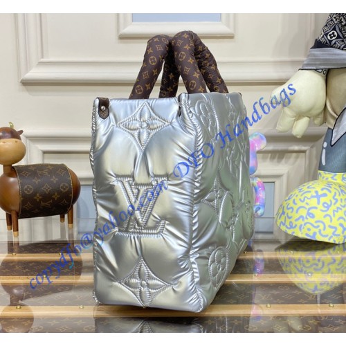 A sporty-chic tote with room for all the essentials: the LV Pillow OnTheGo GM is a stand-out piece for the winter season. Eco-designed using recycled and sustainable materials, it is made from silvery padded nylon, embroidered with Monogram motifs. With padded top handles and two long canvas straps, the bag is easy to wear and comfortable to carry.