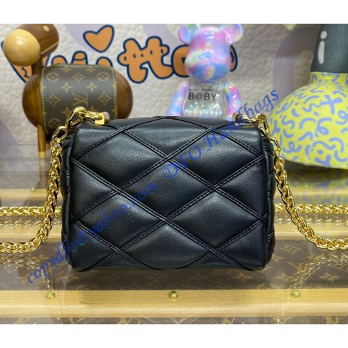 Made from padded lambskin with a golden LV Twist lock on the flap, the Pico GO-14 is an elegant small handbag. It can be carried on the shoulder or cross-body with the golden sliding chain. Lined with cowhide leather, the inside features a back flat pocket.