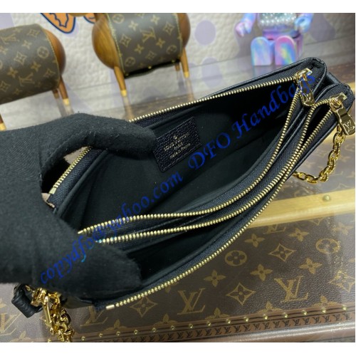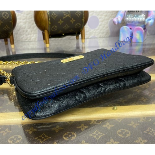 The Pochette Liv is crafted from supple, grained Monogram Empreinte leather and signed with a Louis Vuitton-engraved plaque in gold-tone metal. This stylish, rectangular bag is characterized by its subtle vintage feel. It sits snugly under the arm and can be carried either by its removable, adjustable leather strap or its removable chain.