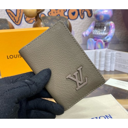 Made from grained LV Aerogram cowhide-leather, this Pocket Organizer is signed with LV Initials in matching-colored metal. This compact wallet is designed to optimize functionality while minimizing size. The wallet boasts three card slots and five pockets inside, an outside pocket on the back, and slips easily into any pocket.