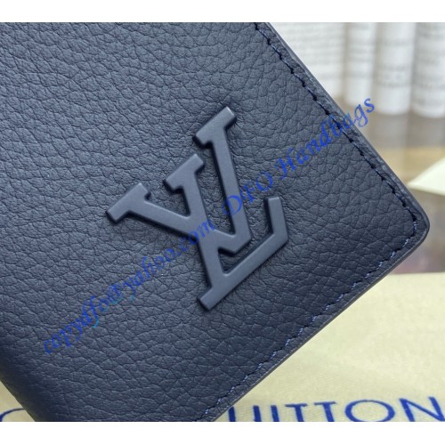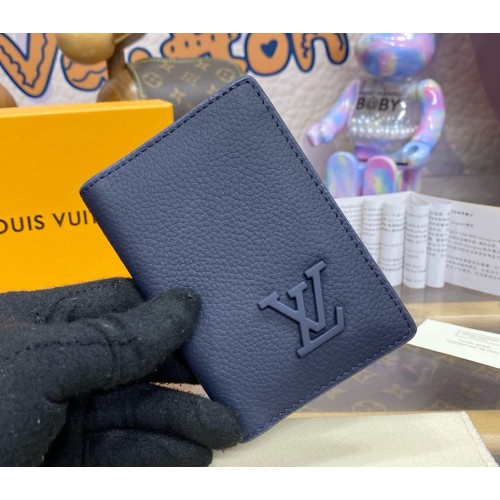 Made from grained LV Aerogram cowhide-leather, this Pocket Organizer is signed with LV Initials in matching-colored metal. This compact wallet is designed to optimize functionality while minimizing size. The wallet boasts three card slots and five pockets inside, an outside pocket on the back, and slips easily into any pocket.