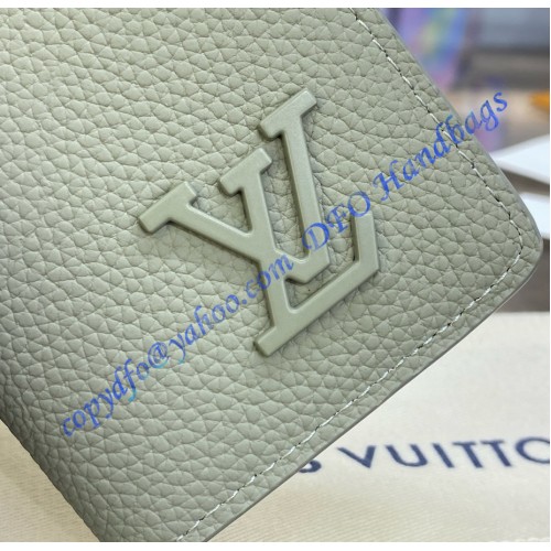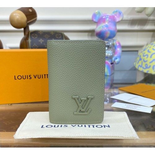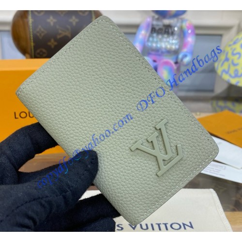 Made from grained LV Aerogram cowhide-leather, this Pocket Organizer is signed with LV Initials in matching-colored metal. This compact wallet is designed to optimize functionality while minimizing size. The wallet boasts three card slots and five pockets inside, an outside pocket on the back, and slips easily into any pocket.