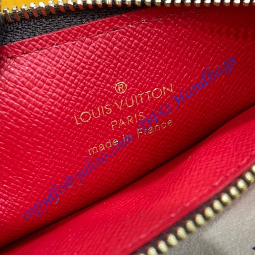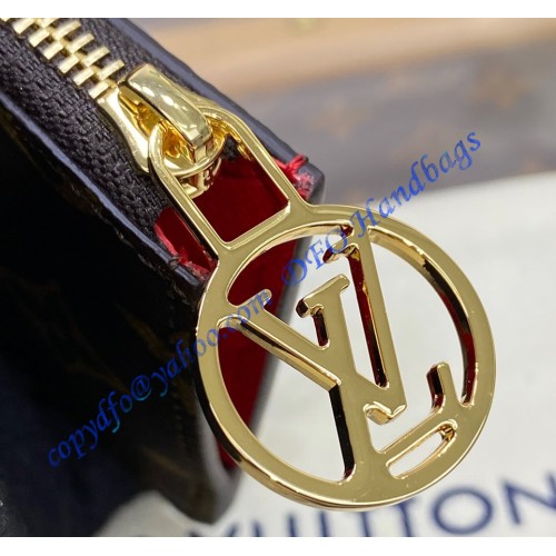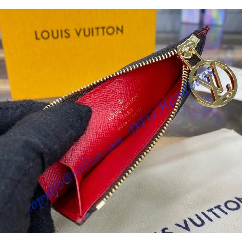 Modern and multifunctional, the Romy Card holder unites the simplicity of a card case with the utility of a zipped, gusseted pouch that is ideal for holding loose cash, coins or receipts. This new model is meticulously crafted from Monogram canvas, accented with a colorful leather lining and a signature LV Circle zip pull in gold-finish metal.