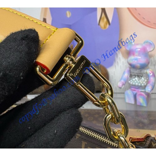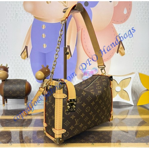 A celebration of the House’s iconic heritage, this Side Trunk GM is the perfect blend of bold and refined with its new chain extension. Sized to store everyday essentials and more... it is crafted from Monogram canvas with gold-toned hardware and contrasting leather trims. Note the signature details, from the S-lock closure to the trunk-inspired corners.