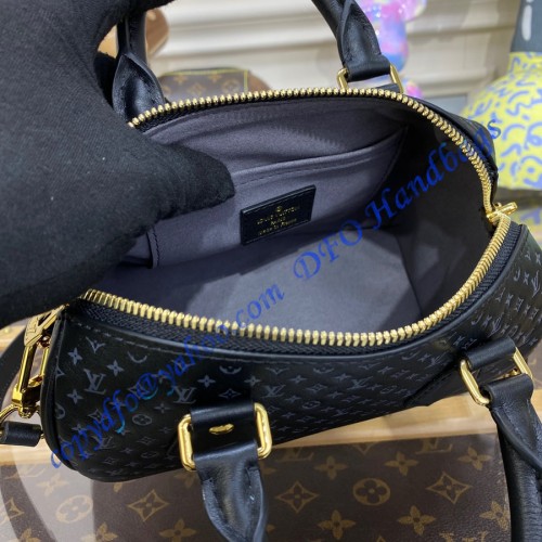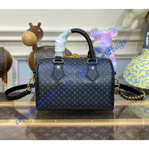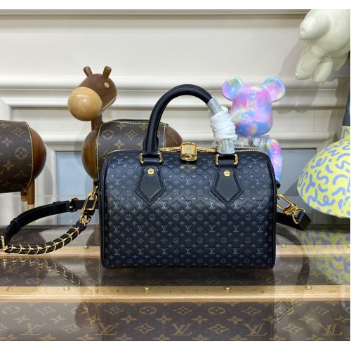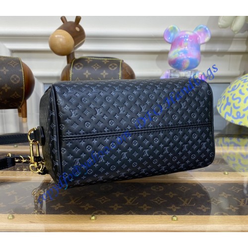 Fashioned from calfskin with a very small Monogram motif embossed then printed on the leather, this Speedy 20 handbag is part of the Nanogram capsule. Its inimitable silhouette, and engraved padlock, make this bag instantly recognizable. A removable and adjustable braided-chain-and-leather strap enables shoulder or cross-body carry.
