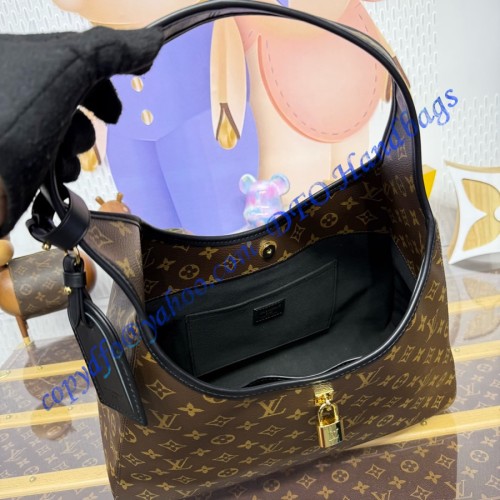 Designed for busy modern lifestyles, Louis Vuitton presents the Drop GM handbag – a sleek and versatile shoulder style that can also be carried by hand. It is crafted from signature Monogram canvas and is accented with a leather name tag embellished with a gold-toned padlock. Inspired by the Flower Hobo, which launched in 2018, this lightweight design is fitted with a secret front pocket to keep valuable items secure.
