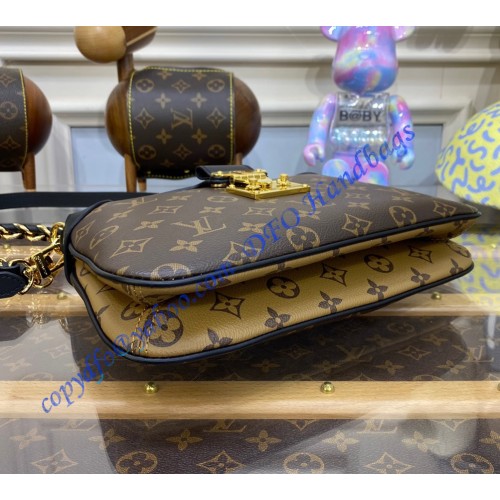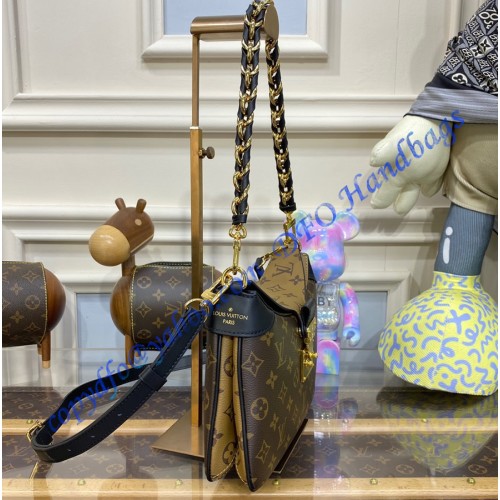 Inspired by the Maison’s archives, the casual yet sophisticated LV Twinny is the Monogram handbag of the season. Crafted from a mix of Monogram and Monogram Reverse canvas with black leather trim, it is detailed with an iconic S-lock and a braided chain handle. The bag lends itself to all manner of stylings: from elbow and shoulder to short or long cross-body wear.