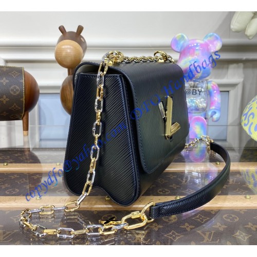 Made from grained Epi leather, this Twist MM hand bag has a faceted chain adorned with an enamel Monogram Flower charm. Thanks to discreet LV hooks, the chain offers multiple carry options: hand and elbow, short and long shoulder, or cross-body. The chain It can also be removed, allowing short shoulder carry with its leather strap.