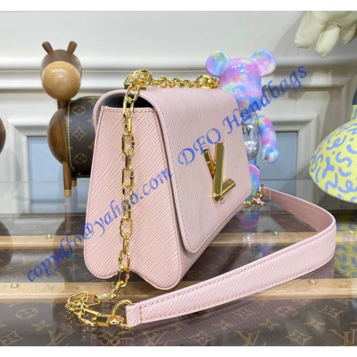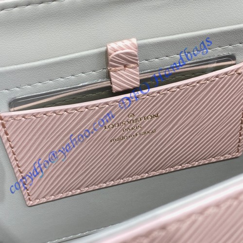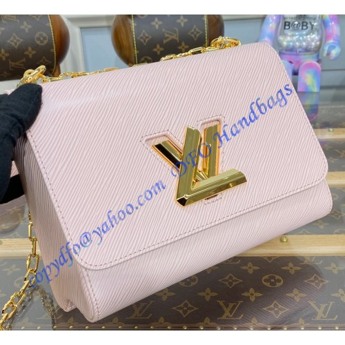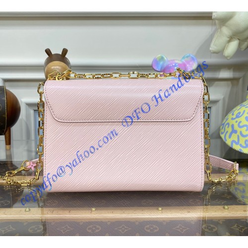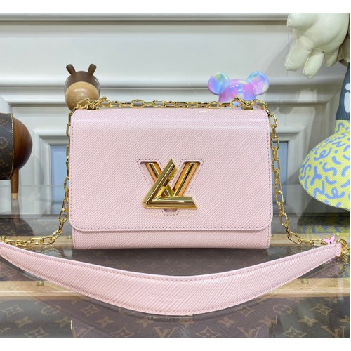 Made from grained Epi leather, this Twist MM hand bag has a faceted chain adorned with an enamel Monogram Flower charm. Thanks to discreet LV hooks, the chain offers multiple carry options: hand and elbow, short and long shoulder, or cross-body. The chain It can also be removed, allowing short shoulder carry with its leather strap.