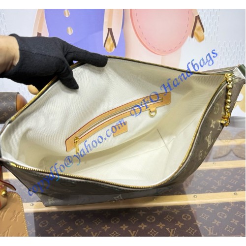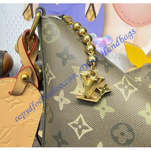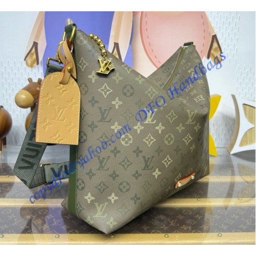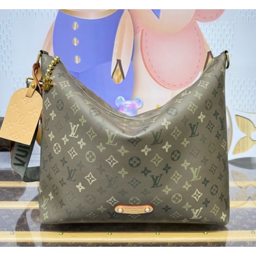 Crafted from Monogram Surplus coated canvas, the Vagabond Hobo bag features matching colored leather trim with tan accents on the name tag and signature tab. Lined in ecru cotton, its spacious main compartment includes a zipped pocket. The wide, adjustable, and removable shoulder strap is boldly signed “LOUIS VUITTON”.