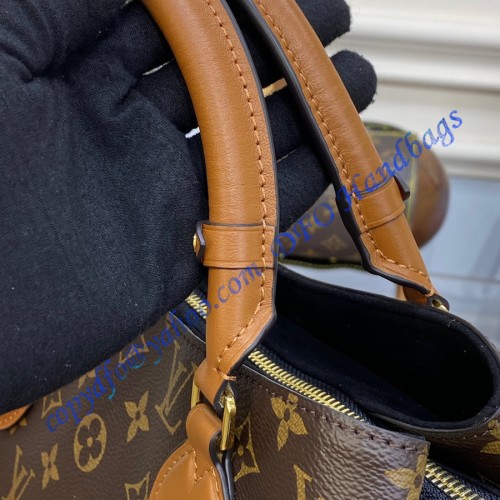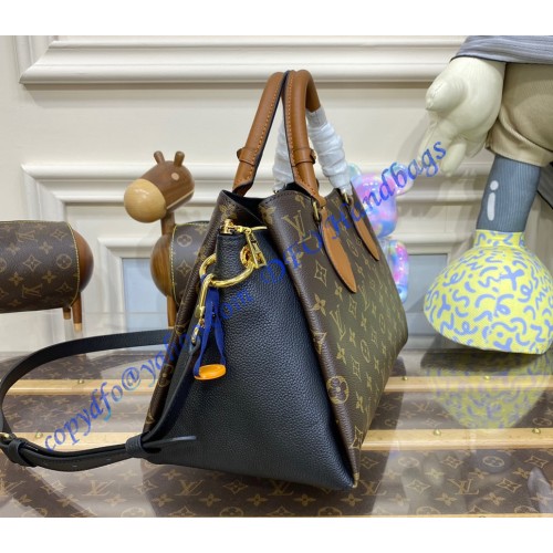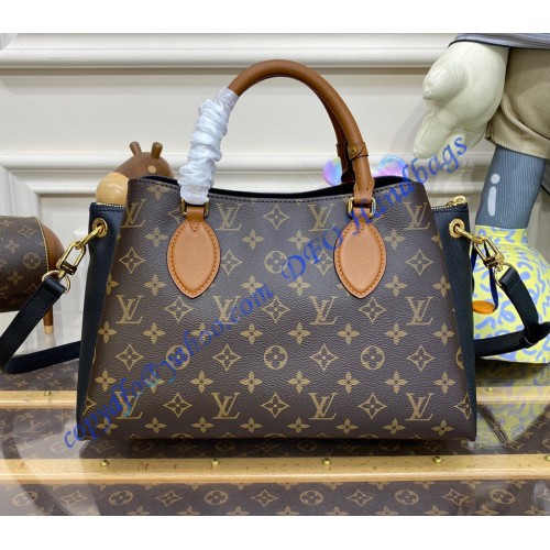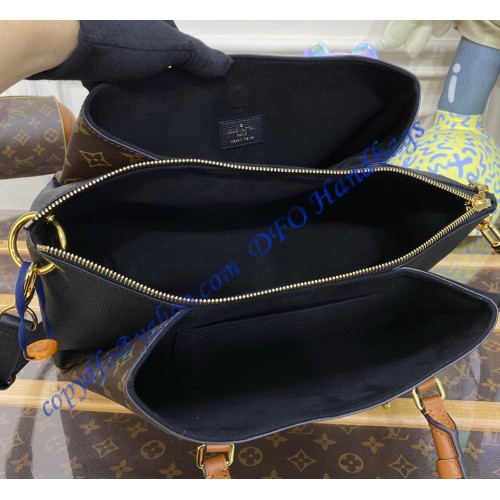 Evocative of the Louis Vuitton Pallas bag from 2012, with its combination of textures and colors, the Vendôme MM tote is fashioned from Monogram canvas with grained leather on the sides and smooth leather on the handles and handle mounts. Inside there are two compartments, room for a laptop, and numerous pockets.