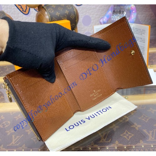 The elegant Victor Wallet in Monogram canvas is the practical way to carry coins, cards, bills, and receipts. Unsnap the button closure and this wallet fold out to reveal a pocket for banknotes, five slots for credit or transport cards, and a zipped pocket for coins. The Victor fits easily into almost any pocket.