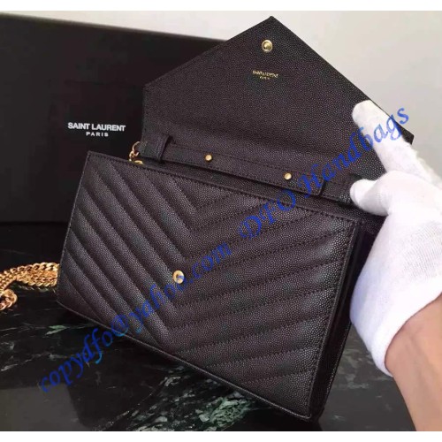 Monogram Saint Laurent Chain Wallet is a timeless flap front wallet with detachable metal chain, metal interlocking YSL signature and matelasse stitching.