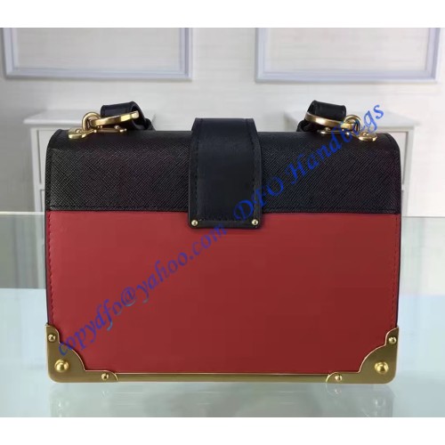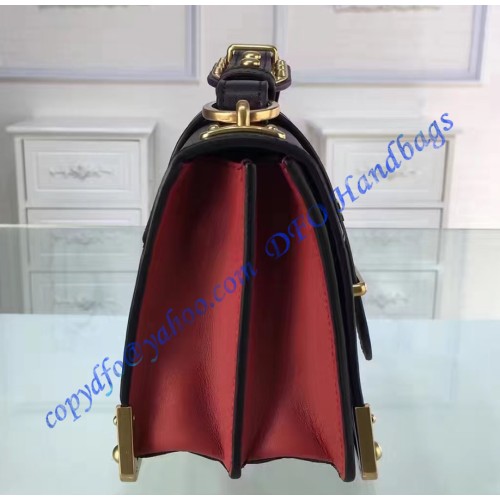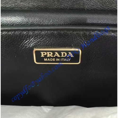 Inside a bag, once you pass by lace closure are two main pockets and two compartments. In general, they are large enough to allow for the owners to place most of the credit cards, coins, and other belongings into them. They are also stretchable and easy to remove an item from them. Logo of Prada is implemented on most metal pieces.