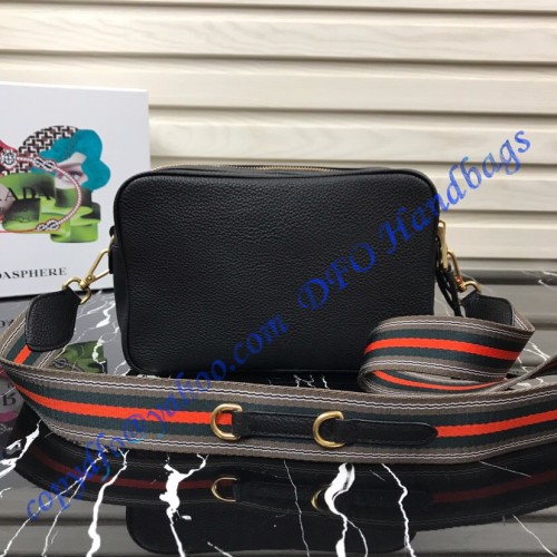 What's more, the calf leather Prada has a detachable multicolor fabric shoulder strap that adds a fun contrast. Thanks to the variety of colors on the strap, you can practically wear this bag with any outfit you like.