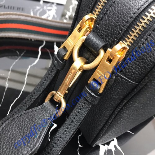 It has two compartments with zipper closures that allow you to keep your valuables safe at all times. Also, the lining is dark gray and has the Prada logo that perfectly compliments the exterior of the bag.