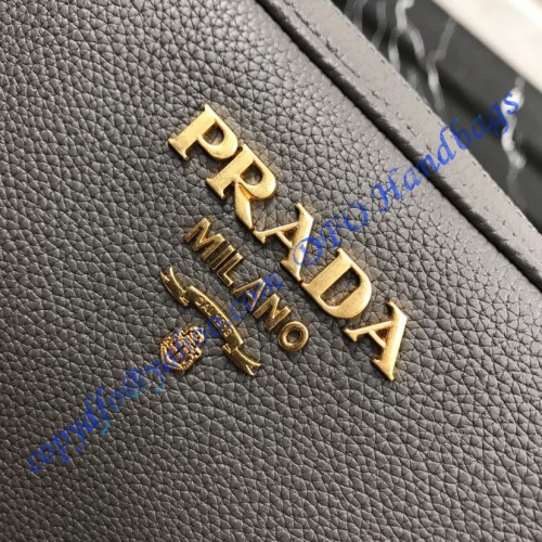 The Prada calf leather gray shoulder bag is 22 cm wide (8.7 in), 15 cm long (5.9 in), and 9 cm deep (3.5 in).