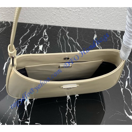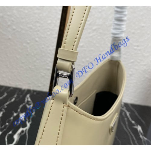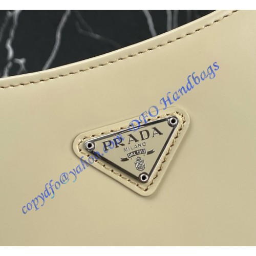 The Prada Cleo bag with sophisticated allure reinterprets an iconic design of the brand from the 1990's. Sleek curved lines emphasized by the particular construction rounded on the bottom and sides give this hobo bag a soft, light look. Brushed leather, a modern and versatile material that is distinctive in Prada collections, is ideal for creating always new combinations and contrasts. The enamel triangle logo decorates the silhouette.